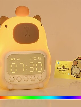 Wecker mit Nachtlicht für Kinder, 7 RGB-Farben, niedliche Wecker für Schlafzimmer, ok zum Aufwachen, Silikon-Tier-Tischlampe für Teenager, Mädchen und Jungen