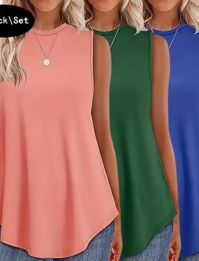 Mehrfachpackungen 3er-Pack Weiblich Rundhalsausschnitt Ärmellos Schwarz + Pink + Weiß Tanktop Weste Ärmelloses Shirt Einfach Lässig Täglich Polyester Sommer