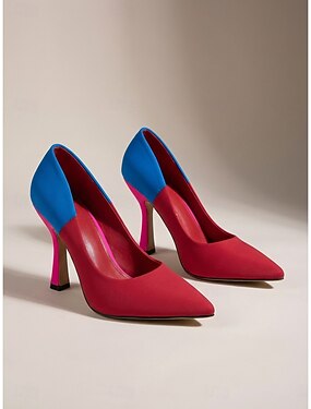 Damen-Pumps mit spitzer Zehenpartie in Color-Blocking – kräftiges Rot, Blau &Pinkfarbene Stiletto-Absätze für Abendveranstaltungen und besondere Anlässe &Modeveranstaltungen