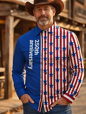 250-jähriges Jubiläum USA Retro Vintage 1970er Hemd Aloha-Hemd langarm Hippie Geometrisch Ethnisch Kostüm Herren Maskerade 4. Juli Party Unabhängigkeitstag Erwachsene Hemd
