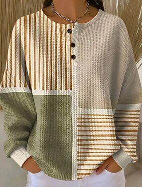 Damen Pullover Sweatshirt Knöpfe Grafik Geometrisch Elegant Vintage Mode Langarm Rundhalsausschnitt Normale Oberteile Lässig Heim Hochzeitsgast Blau Dunkelrot Grün Regenbogen Frühling Herbst Winter
