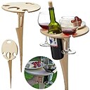 Weintisch im Freien, runder klappbarer Weintisch, Picknick-Campingtisch aus Holz, Strandtisch, Champagner-Picknicktisch für draußen, Park, Rasen, Strand, Picknick, Weinglashalter, Reisen |
