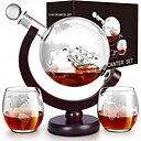 Whisky-Dekanter-Set für Herren, Whisky-Dekanter-Globus-Set mit 2 gravierten Globus-Whiskygläsern für Spirituosen, Bourbon, Cocktails, Wodka, Scotch-Dekanter-Sets – 850 ml |