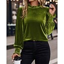 Damen Samt Elegant Bluse Gerafft Einfach Vintage Stilvoll Langarm Rundhalsausschnitt Normale Oberteile Täglich Ferien Ausgehen Blau Armeegrün Grün Rosa Herbst Winter |