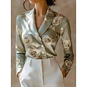 Damen Elegant Satin-Top Bluse Elegante Oberteile Blume Vintage Täglich Langarm Hemdkragen Normale Oberteile Wein Grün Aprikose Frühling, Herbst, Winter, Sommer |