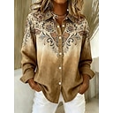 Damen Hemd Bluse Patchwork Knöpfe Druck Grafik Geometrisch Abstrakt Vintage Stilvoll Modern Langarm Hemdkragen Normale Oberteile Täglich Blau Braun Grün Khaki Herbst Winter |