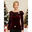 Weihnachten Damen Elegante Oberteile Gerafft Elegant Langarm Rundhalsausschnitt U-Boot-Ausschnitt Normale Oberteile Abendgesellschaft Abendkleidung Wein Frühling Herbst Winter |