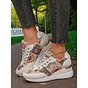 Goldene Keilsneaker für Damen – Plateau-Sneaker mit Schnürung und Ethno-Print für lässige Streetwear und Wochenendausflüge |