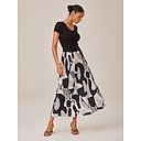 Damen Freizeitkleid Langes Kleid Maxikleid Schwarz Kurzarm Geometrisch Sommer Rundhalsausschnitt Urlaub Modern XS S M |
