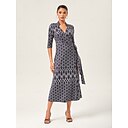 Damen Wickelkleid Langes Kleid Maxikleid Schwarz Halbärmel Geometrisch Sommer Herbst V Ausschnitt Urlaub XS S M |
