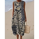 Damen Midi Kleid Leinenähnliches Sommerkleid Shift Kleid A-Linien Kleid Urlaub Freizeit Boho Strand Ausgehen Lockere Passform Floral Grafik Ärmelos Rundhalsausschnitt Rosa Lila Grün cremefarben |