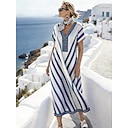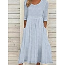 Damen Midikleid Freizeitkleid A Linie Kleid Elegant Stilvoll Lässig Täglich Urlaub Lässiger Schnitt Gestreift Kurzarm Rundhalsausschnitt Grau Leicht Blau Sommer Frühling |