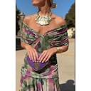 Damen Midikleid Etui-Kleid Wickelkleid Bandage Kleid Figurbetontes Kleid Urlaub Party Geburtstag Hochzeit Outdoor Party Schlank Einfarbig Grafik Kurzarm Schulterfrei Blau und Weiß Grüne Mischung Rot |