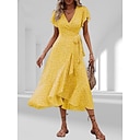 Damen Midikleid Freizeitkleid Wickelkleid Blumenkleid Elegant Mode Modern Outdoor Urlaub Ausgehen Normale Passform Blumen Kurzarm V Ausschnitt Schwarz Gelb Rosa Rote Sommer Frühling |
