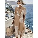 Damen Midikleid Sommerkleid A Linie Kleid Urlaub Lässig Strand Strand Party Lässiger Schnitt Grafik Geometrisch Kurzarm V Ausschnitt Blau Purpur Grün Khaki Sommer Frühling |