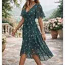 Damen Midikleid Cocktailkleid Chiffonkleid Blumenkleid Mode Modern Urlaub Ferien Teegesellschaft Normale Passform Blume Kurzarm V Ausschnitt Blau Hellgrün Rote Marineblau Sommer |