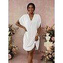 Weiblich Freizeitkleid Dunkelblau Kurzarm Kurze Ärmel Einfarbig Sommer Frühling Herbst V Ausschnitt Elegant Modern XS S M |