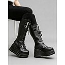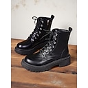 Schwarze, halbhohe Schnürstiefel für Damen, Stiefel im Gothic-Punk-Stil mit dickem Absatz für Freizeit, Ausgehen und Streetwear |