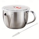 Suppentrenner aus Edelstahl mit großem Fassungsvermögen, Deckel, Sieb und Fettfilter für die Küche, vielseitiger Fleisch- und Ölfilter, Kochutensil, stilvolles Design, griffiger Griff |