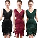 Goldene Zwanziger 1920er Knielang Kleid Flapper Kleid Outfits Kurze Ärmel Der große Gatsby Pailletten Quastenfransen Pailletten Quaste V Ausschnitt Kostüm Damen Maskerade Abschlussball |