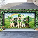 Garagentorabdeckung zum St. Patrick's Day, Welpen in Koboldkostümen, Kleeblätter &Regenbogenmotiv, festliche Außendekoration zur Feier des St. Patrick's Day. |