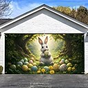 Osterdekoration für Garagentore, niedlicher Hase mit bunten Eiern in einem verwunschenen Garten, festliche Osterdekoration für Feierlichkeiten im Freien, perfekt für Frühlingsfeste |