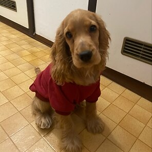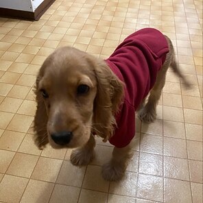 Gute Siet und Farbe auch, wie ich auf der Website gesehen habe. Größe: L, 13 Wochen alt Cocker Spániel