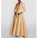 A-Linie Bodenlang Abendkleid Flattriges Kleid Langarm Hemdkragen Elegant Formell Hochzeitsgast Satin Brautmutterkleid mit Gerafft |
