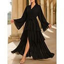 A-Linie Bodenlang Hemdblusenkleid Abendkleid Langarm Hemdkragen Elegant Vintage Hoher Schlitz Formell Hochzeitsgast Satin Brautmutterkleid mit Glitzer Schlitz Stickerei |