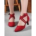 Rote Wildleder-Tanzschuhe mit gekreuzten Riemen und mittelhohem Absatz für Damen – professionelles Schuhwerk für Latein und Standardtanz |