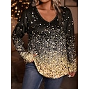 Damen Übergröße Oberteile T Shirt Geometrie Druck Langarm V Ausschnitt Lässig Täglich Polyester Herbst Winter Blau Purpur |