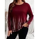 Damen Übergröße Oberteile T Shirt Geometrie Druck Langarm Rundhalsausschnitt Lässig Täglich Polyester Herbst Winter Blau Wein |