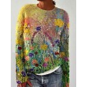 Damen Pullover Lässig Blumen Grafik Rundhalsausschnitt Patchwork Gestrickt Langarm Normale Oberteile Stricken Arbeit Gelb Orange Frühling Herbst |