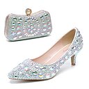 Set mit kristallverzierten Kitten Heel Schuhen und passender Clutch für Damen - elegante Strass-Hochzeitspumps mit Abendtasche |