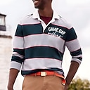 Herren Gestreift Buchstabe Rugby-Poloshirt Golf Poloshirts Langarm Polo-Shirts Umlegekragen Lässig Outdoor Streetwear Alltagstauglich 3D Druck Herbst Winter Blau Schwarz Dunkelmarine |