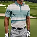 Herren Golf Verlaufsstreifen Waffel-Poloshirts Golfshirt Kurzarm Polo-Shirts Hemden mit Kragen Sportbekleidung Lässig Outdoor Athleisure Alltagskleidung 3D-Druck Knöpfe Sommer Blau Purpur Grün |