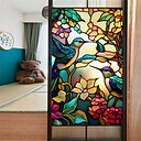 Buntglasfensterfolie, farbenfrohe Retro-Blumen- und Vogelfensterfolie, elektrostatische Aufkleber für Fensterglas, abnehmbare Sichtschutzfolie für Fenster, dekorative Buntglasfolie für das Homeoffice |