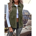 Damen Weste Outdoor Strasse Freizeitskleidung Herbst Winter Standard Mantel Regular Fit warm Atmungsaktiv Stilvoll Brautkleider schlicht Jacken Ärmellos Feste Farbe Mit Taschen Armeegrün Khaki |
