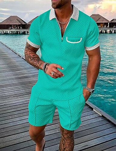 Herren Poloshirts Reißverschluss-Polo Outdoor Alltagskleidung Revers Kurzarm Mode Hawaiianisch Einfach 2 teilig Sommer Normale Passform Schwarz Weiß Marineblau Königliches Blau Himmelblau Khaki