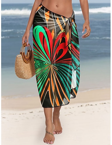 Damen Badeanzug Überwurf Wickeln Rock Bademode Urlaub Vintage Ombre Geometrisch Ärmellos Badeanzüge