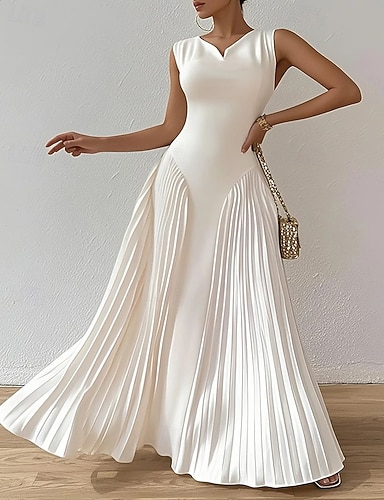 Damen Langes Kleid Maxikleid Abschlussballkleid Partykleid Etui-Kleid Elegant Mode Modern Abendgesellschaft Party Besonderer Anlass Normale Passform Einfach Ärmellos V Ausschnitt Weiß Frühling Herbst