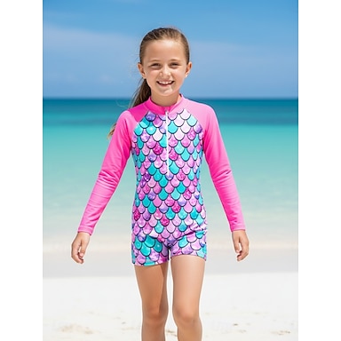 Kinder Mädchen Badeanzug Outdoor Strand Grafik Urlaub Tropisch Mode Reißverschluss Badeanzüge Ab 4 Jahren Sommer Blau Hellrosa