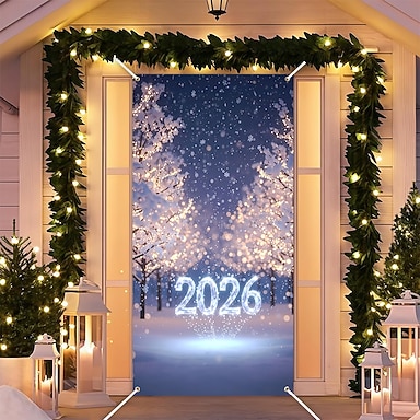 Silvester Poster Türabdeckung Banner für den Außenbereich glückliches neues Jahr 2026 Niedlich 3D Party Wohnheim Jugendzimmer Studentenwohnheim Jungs, Männerhöhle, Studentenwohnheim Hintergründe