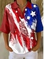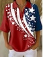 Damen Hemd Bluse Patchwork Knöpfe Flagge Stilvoll Klassisch Modern Kurzarm Hemdkragen Normale Oberteile Täglich Ferien Ausgehen Blau Rote Leicht Blau Sommer Frühling