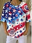 Amerikanischer Unabhängigkeitstag Damen T Shirt Druck Grafik USA Vintage Stilvoll Lässig Kurzarm Rundhalsausschnitt Rundhals Normale Oberteile Lässig Täglich Blau Schwarz Weiß Rote Sommer Frühling