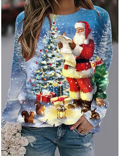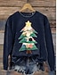 Weihnachts Frauen Santa Claus Weihnachtsbaum Pullover Grafik Claus Lässig Lange Ärmel Rundhalsausschnitt Reguläre Tops Lässiger Feiertag Druck Schwarz Blau Grau Herbst Winter