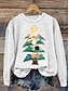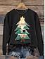 Weihnachts Damen Weihnachtsbaum Pullover Hoodie Sweatshirt Lässig Langarm Rundhals Reguläre Oberteile Street Alltag Kleidung Druck Schwarz Weiß Marineblau Grün Herbst Winter