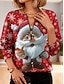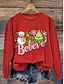 Weihnachten Damen Pullover Sweatshirt Grafik Lässig Langarm Rundhals Reguläre Tops Straße Lässig Urlaub Druck Rot Grün Frühling Herbst Winter