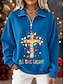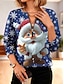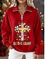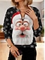 Damen Pullover Sweatshirt Sweatshirts mit Reißverschluss Weihnachtsmann Mode Lässig Langarm Rundhalsausschnitt Normale Oberteile Straße Alltagskleidung Lässig Reißverschluss Druck Schwarz Wein Blau