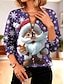Weihnachten Damen Pullover Sweatshirt Hoodies Grafik Tier Mode Lässig Langarm Rundhals reguläre Tops Straßen Alltagsbekleidung Druck Rot Blau Lila Grün Frühling Herbst Winter